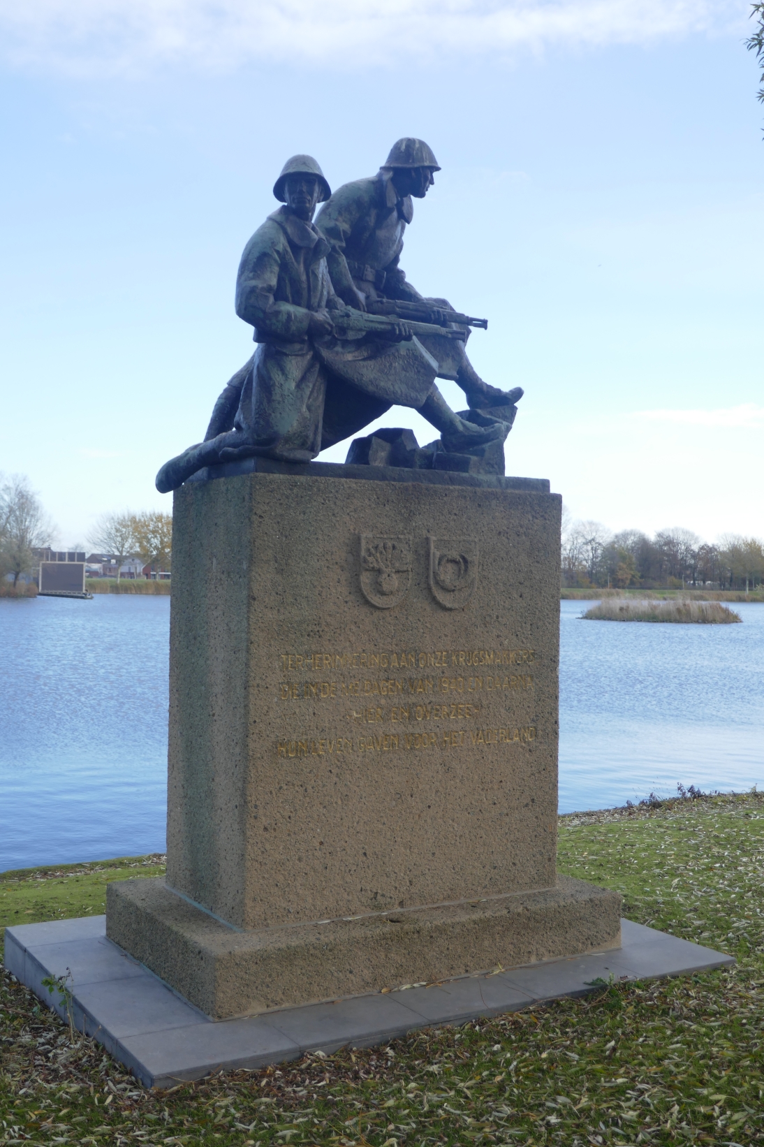 We volgen het wandelpad met links van ons de grote plas, en spoedig bereiken we het oorlogsmonument, dat ons herinnert aan de Tweede Wereldoorlog én aan het feit dat op deze plek vroeger het vliegveld Ypenburg was gelegen, dat een rol speelde in deze oorlog en waar menig soldaat is gevallen. De eerder gevolgde Rijswijkse Landingsbaan heeft niet voor niets deze naam, zij volgt letterlijk de startbaan die hier vroeger gelegen was. Later op deze wandeling volgt nog een tastbaar overblijfsel van het vliegveld. Iets om even bij stil te staan, zeker omdat verder niets in deze mooie en ruim opgezette woonwijk doet herinneren aan het vliegveldverleden, laat staan aan het oorlogsverleden.